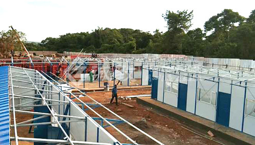 湖南路橋建設(shè)集團攜手我們湖南誠致,來到美麗的非洲大地,在馬薩卡鎮(zhèn)的維多利亞湖旁,建造了3400平方的標準K式板房做為項目部駐地,我們湖南誠致派出了兩位技術(shù)骨干,與當?shù)厝罕娨黄穑餐瑏泶蛟煳覀兒险\致生產(chǎn)的標準K式活動板房,目前已順利進展中。