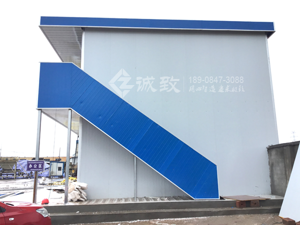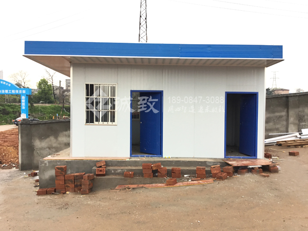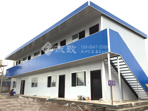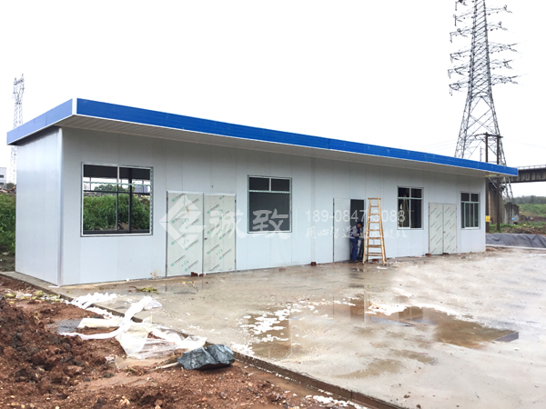 我們湖南誠致公司負責該項目部臨建設施,其中有四坡豪華活動板房兩棟(作為辦公室與設備房),單坡豪華活動房兩棟(作為門衛室與衛生間),總建筑面積為610平方,辦公室采用了10公分厚的巖棉板,隔熱隔音效果等非常好,同時也使用了豪華防盜門與鋁合金門窗,整個效果非常驚艷,為臨時居家辦公首選。