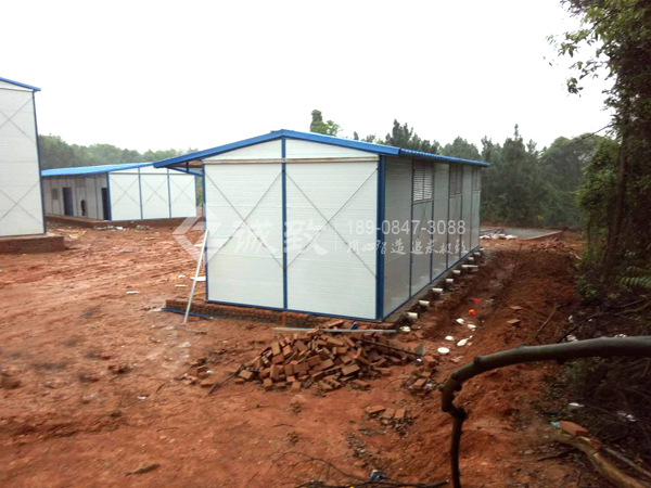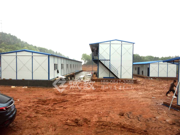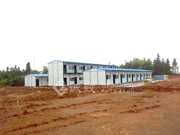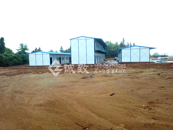 新余市環城路改建工程項目部駐地,為我們2017年建造,這次水穩瀝青站需要建駐地,客戶還是選擇了我們,總共六棟標準K式活動板房,面積約為1350平方,包括辦公室、試驗室、宿舍樓、廚房、餐廳、廁所、浴室、門衛室,面積雖少,但功能齊全。我們湖南誠致克服工地沒水沒電,連續下雨等不利條件,仍保質保量地為客戶完成了此項工程。