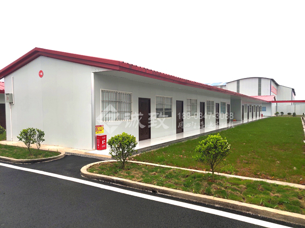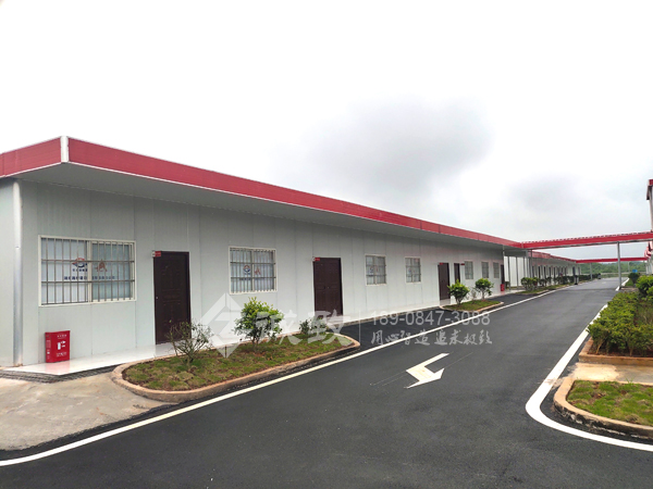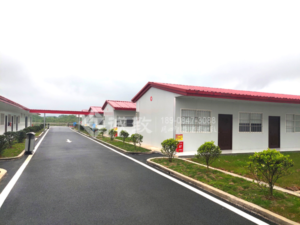 我們湖南誠致承建該工程項目經理部建設,總共建有十一棟豪華活動板房,其中四棟豪華四坡活動板房,七棟為豪華雙坡活動板房,除了主辦公樓為雙層,其余都為單層,總建筑面積為4510平方,包括主辦公樓、會議室、宿舍、農民工學校、廚房、餐廳、廁所、洗漱間、門衛室、晾衣棚等,功能豐富,同時棟與棟之間也為過道連廊連接,極大方便進出,項目部也按我們設計要求種植了各種花草,郁郁蔥蔥,整個項目部給人感覺非常舒適。