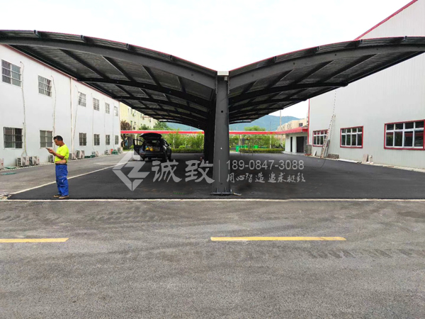 由湖南交水建集團、建工集團和湘投集團三家大型國有企業聯合組建的湖南省平益高速公路建設開發有限公司,之前平益高速開發公司辦公駐地也為我們承建,這次我們湖南誠致為客戶設計、搭建一個“Y”字型重型鋼結構停車棚,總建筑面積約為400平方,共有24個停車位,整體構造簡潔大方,做工精良,抗風抗雪,落成后深得客戶喜歡。