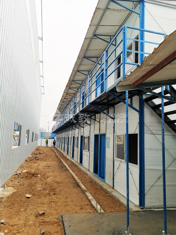 工程介紹:此工程為3KX20KX6P的標準兩坡板房,它是以彩鋼板為骨架,以夾心板為維護材料,以標準模數進行空間組合,構件采用螺栓連接,全新概念的環保經濟型活動板房屋。可方便快捷地進行組裝和拆卸,實現了臨時建筑的通用標準化,樹立了環保節能、快捷高效的建筑理念。