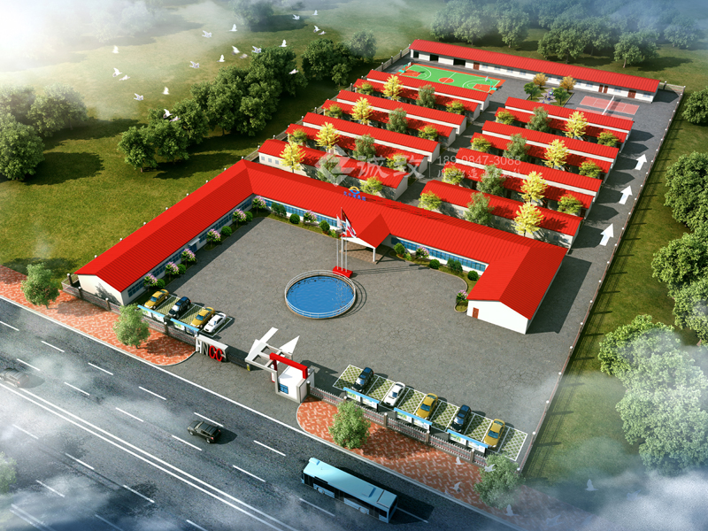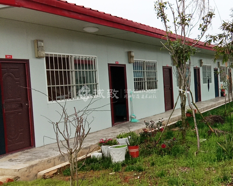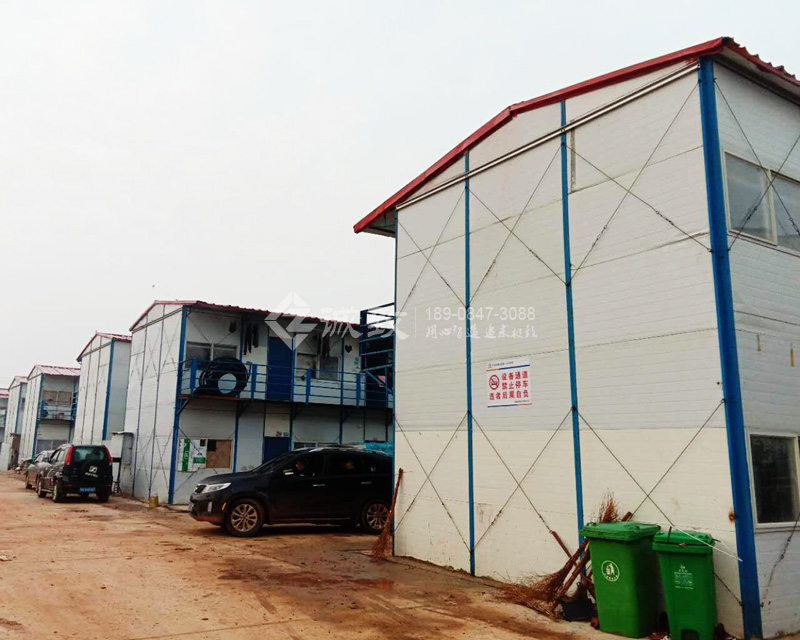 再看看這邊幾棟采用藍(lán)色C型鋼立柱配紅色單瓦屋頂?shù)膬蓪与p坡標(biāo)準(zhǔn)K式板房建筑,沒錯(cuò),這就是平時(shí)員工休息的宿舍樓,房間里面既遮風(fēng)擋雨,恰到好處的空間大小使得居住在里面的員工倍感溫馨。