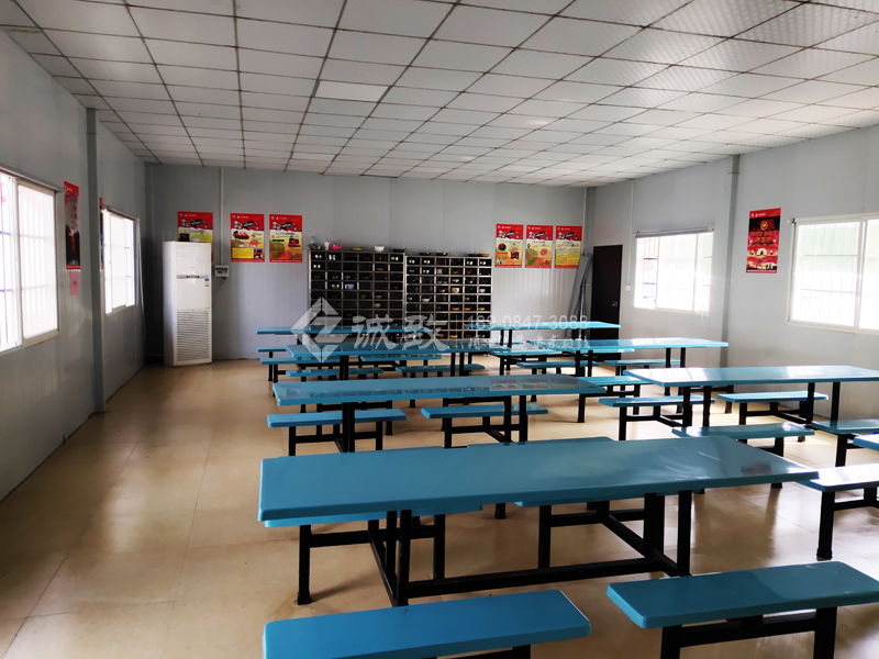 除了配備樸素大方的湖藍(lán)色就餐桌外,還為企業(yè)人員配備專用的消毒柜,將這個(gè)食堂布置得妥妥的,一點(diǎn)都不擁擠。