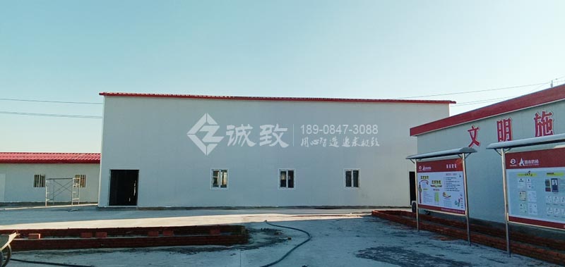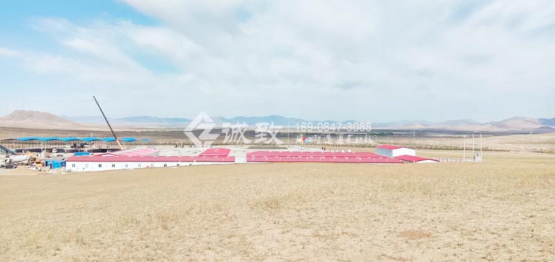 厚實的白色墻板采用A級防火巖板彩鋼夾芯板,在這干燥風大的內蒙古地帶,防風沙又防火,防紫外線又保溫。