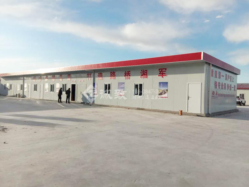 湖南路橋建設集團有限責任公司內蒙古大查公路DCSG-1標項目部臨建設施活動板房建設,從開工到竣工,歷時一個月,遠遠地望去,在這遠地無人誰憑問的地方,我們的項目部臨建駐地處于茫茫沙海之中,是廣闊大地上人文建筑氣息的延展。