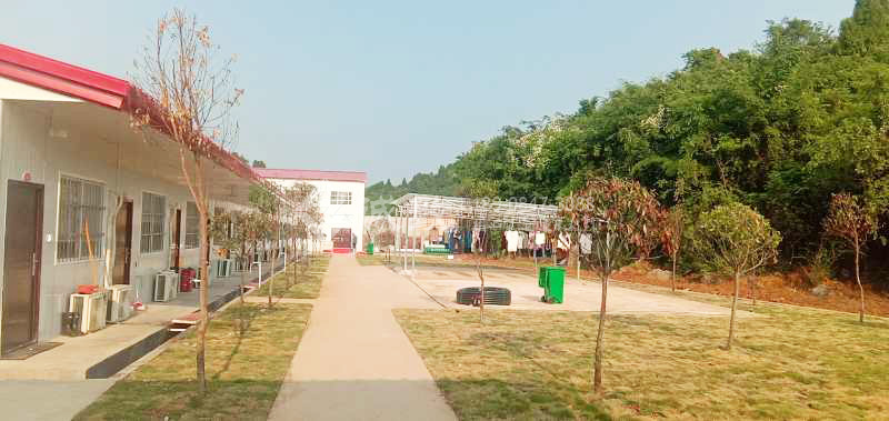 綠樹、紅瓦、白墻相輔相成的鑄就了湖南永州湖南路橋新田連接線項目經(jīng)理部優(yōu)雅舒適的辦公、就餐、住宿、運動的活動場所。