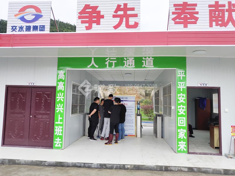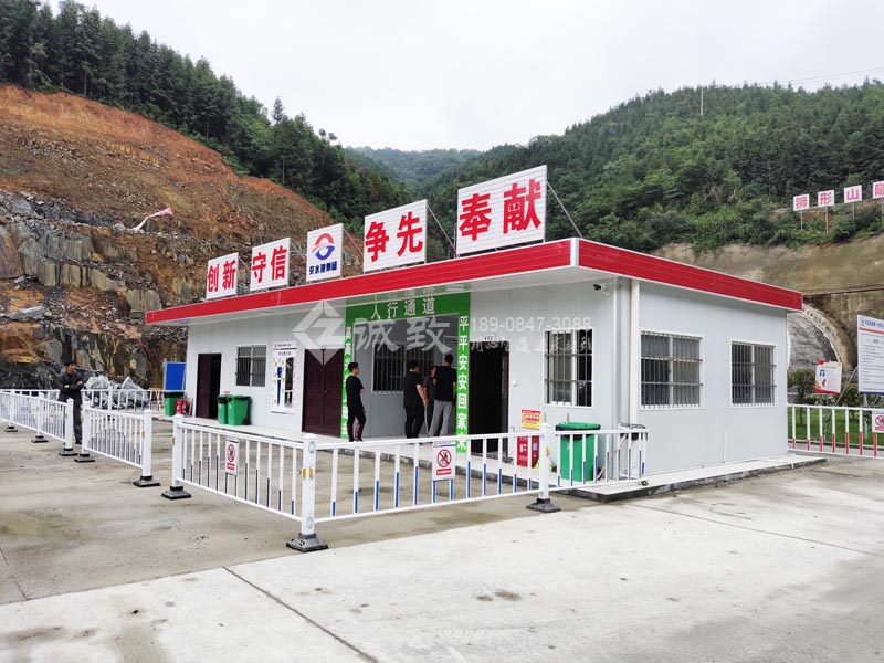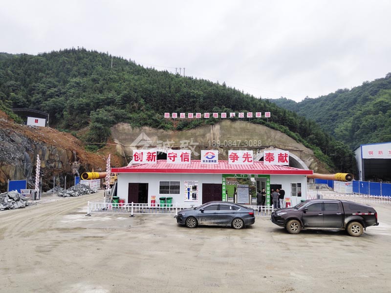 小伙伴們,今天就讓我們一起走進伍仕鎮碼頭平益十標,在由湖南路橋承建的獅型山隧道口,一座紅色豪華四坡單層活動板房就展現在我們的面前。