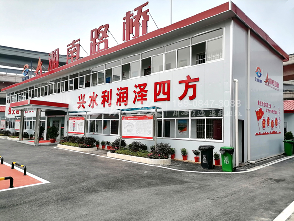 我們湖南誠致承建該項目活動板房,總共建有六棟板房,其中一棟豪華雙層四坡活動板房做為主辦公樓,其余為豪華雙坡單層活動板房,總建筑面積為2300平方,包含有辦公室、宿舍、實驗室、廚房餐廳、廁所等,滿足項目部生產生活需要。