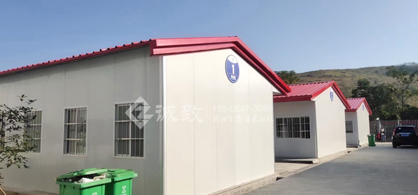 衡永九標項目經理部位于永州市牛角壩鎮,我們湖南誠致承建該項目臨建活動板房,總共有9棟豪華活動板房,其中4棟豪華四坡活動板房,5棟豪華雙坡活動板房,總面積約為3850平方,棟與棟之間用過道連廊連接,極大地方便了我們的客戶在其中工作與生活。