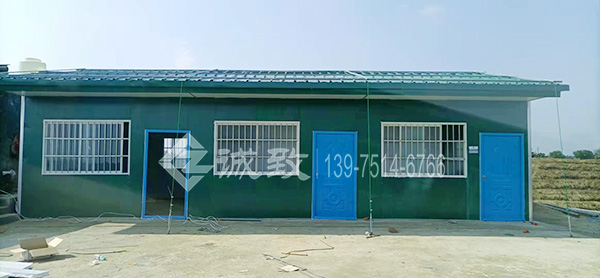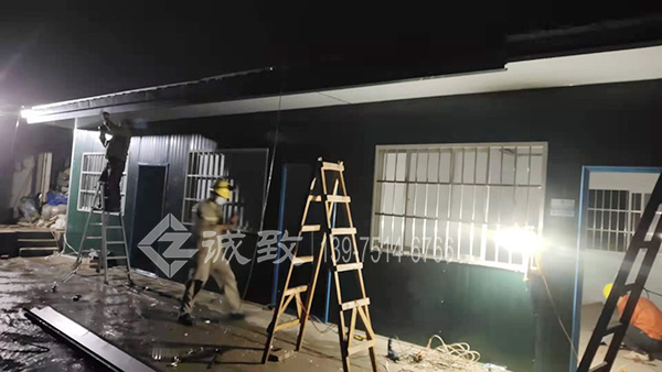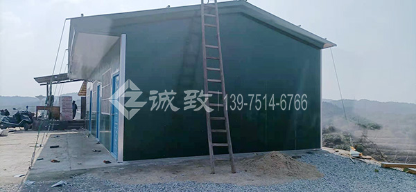 本工程為新余仙女湖楊梅園一豪華雙坡活動板房,活動板房建于山坡上,做了活動板房防臺風措施;項目面積不是很大,83平方米,用時兩天半搭建完成。