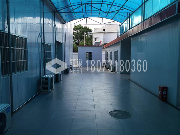 干杉高速豪華雙坡活動板房搭建完成,我么你一起來看看搭建后的效果。