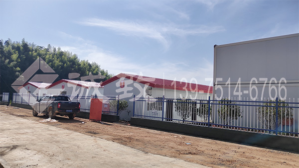 此次株洲醴婁四標項目,客戶選用了豪華雙坡活動板房,豪華四坡活動板房,標準K式活動板房組合的方式,現已搭建完成,下面我們一起來看看項目駐地的實景圖片吧: