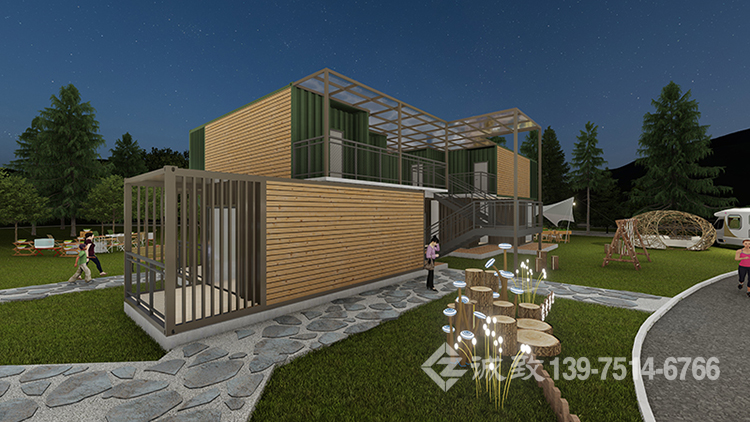 項目介紹:驢友出發營地位于萍鄉武功山風景名勝區麻田鎮,建設面積約3萬6千余平方,投資額約4500萬元。主要包括“一軸一心三區”,即主動線軸、零公里出發地、互動區、露營區、住宿區。其中零公里出發地約800㎡,里面打造花園集散景觀和武功山全景沙盤節點。全面融合了商業旅游、休閑、居住、聚會等多樣業態,能滿足驢友及各類游客需求。營地配套的集裝箱民宿酒店由我司設計、施工、建設,包括中央水景集群、南部客房集群,以下為南部客房集群。
