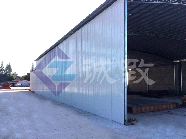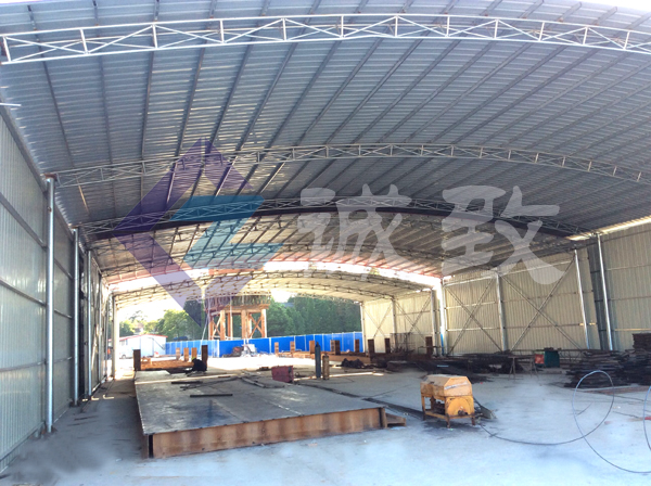 工程介紹:該工程總共建有1000平方的鋼筋加工棚一個。本次為預制場制作的鋼筋加工棚跨度為20米,長度為50米,由兩個可移動鋼筋加工棚和一個固定鋼筋加工棚組成,由于我們湖南誠致彩鋼制造有限公司設計巧妙,獨具匠心,完工后贏得客戶的贊賞。