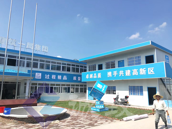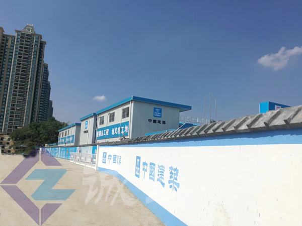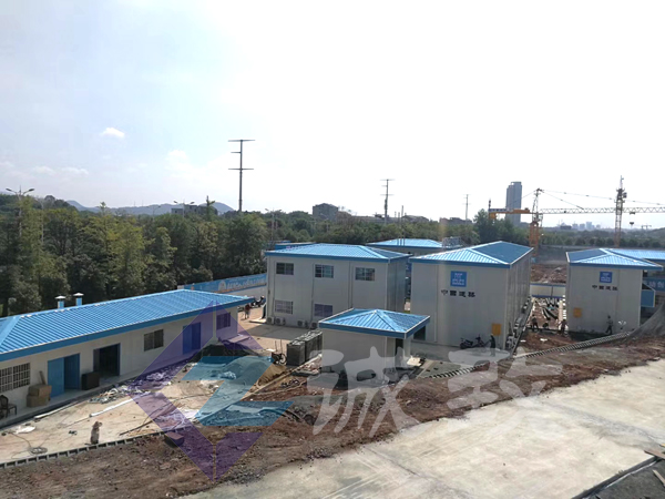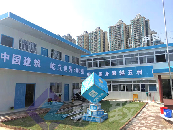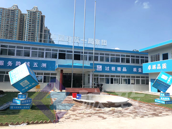 本工程為3500平方的活動板房,其中豪華四坡活動房2100平方,標準K式活動板房1400平方,分為項目部區與民工區,包含了主辦公樓、宿舍、廁所、餐廳、門衛室、停車棚、晾衣棚等, 我們湖南誠致根據場地要求,整體布局緊湊,整體外觀簡潔大方,深得客戶喜歡。