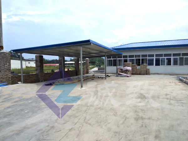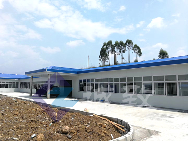 我們湖南誠致承建了太平洋建設廣西環江縣農民工創業園路網建設項目部臨建工程,主要為一棟豪華U型四坡活動板房,一棟豪華門衛室、和一個停車棚,總建筑面積為2300平方,其中U型豪華活動房,打破了我司、乃至整個湖南、廣西板房最大單體記錄,整棟面積為2000平方,寬為13.3米,環型周長達到171米,整棟板房氣勢如虹,建成后深得客戶喜歡,目前主體工程已完工,正在進行內部裝飾工程。