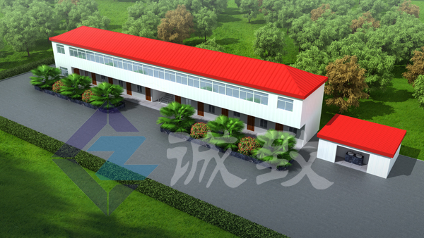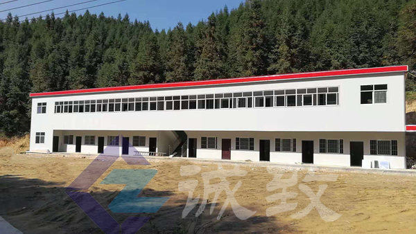 本工程為1棟W6.7×L42×H6.9m的雙層豪華四坡活動板房作為辦公樓,1棟W4.7×L7.1×H2.8m單層豪華四坡活動板房作為廁所,總面積為615平方,整體造型簡潔,二樓外部走道設計成一排通窗,身在其中辦公生活都非常愜意,做成后也深得客戶認可,湖南誠致,您信奈的活動板房臨建專家!