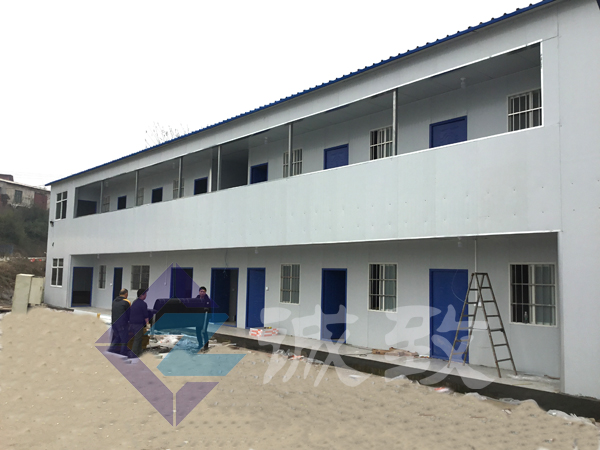 本工程為一棟雙層豪華坡頂活動(dòng)板房,二樓內(nèi)置走道,作為辦公房,一棟單層豪華坡頂活動(dòng)板房,為廚房、餐廳及倉(cāng)庫(kù),還有一棟單層豪華平頂活動(dòng)板房,作為開(kāi)水房,總面積為700平方,整個(gè)設(shè)計(jì)美觀大氣,完成后深得客戶喜愛(ài)。