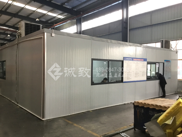 本工程為一棟長9.6米,寬12.6米,高2.8米的平頂室內(nèi)活動板房,由于客戶為物流公司,消防要求必須防火,客戶找到我們,我們湖南誠致為客戶量身打造了這一棟全防火活動房,滿足了客戶辦公急需。